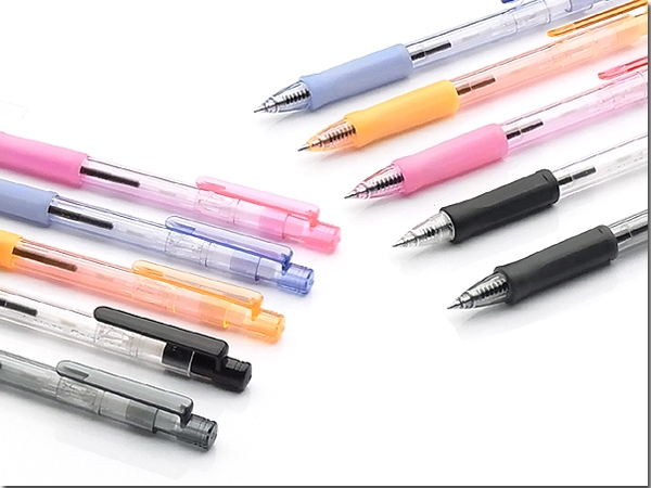 ・握りやすい六角グリップにインク残量の見える6色のクリアボディ!