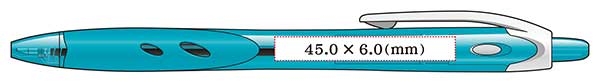 名入れ可能範囲は最大45.0×6.0mmとなりますが、印刷可能範囲全面に天地(上下)6.0mmで印刷しますと 軸の細い部分の名入れが多少歪む事がありますので、その場合は天地5.5mmくらいを目安に作成いただくのがお勧めです。 名入れ位置の中央から向かって左側にかけては軸が細くなりますので、天地(上下)を6.0mm使うような 細かいロゴは、より綺麗に名入れが映える中央から向かって右側への配置をお勧めしております。