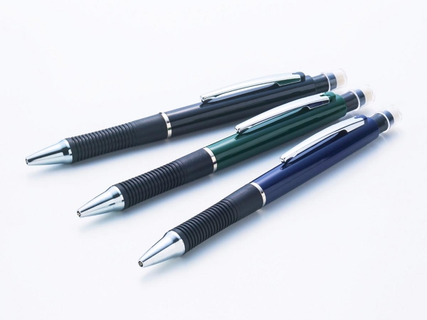 メタルポイントシャープペンはシックでハイセンスなカラーリングとシルバー塗装が施されたクリップやノックパーツなどで高級を演出するボールペンです。また、ペン先グリップのくびれが指をしっかりホールドしてくれ書きやすい機能性も持った高級感あふれるシャープペンです。学業シーンで断トツ人気の名入れシャープペンにハイセンスな落ち着いたカラーリングのメタルポイントシャープペンをご検討ください。