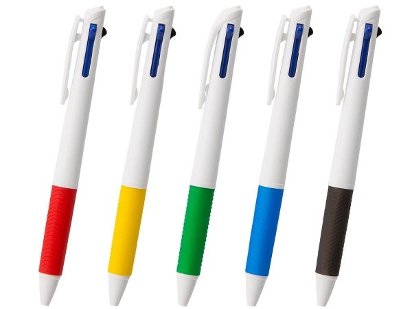 NEW3色ボールペン2はスリムでスタイリッシュな軸は握りやすく、ペン先のラバーで指が滑りにくいから書き心地を損なわない3色ボールペンです。ペン先のラバーの色鮮やかなビビットカラーが大きな特徴で、コーポレートカラーやイメージカラーなどに合わせて色を選び作成できる名入れボールペンです。