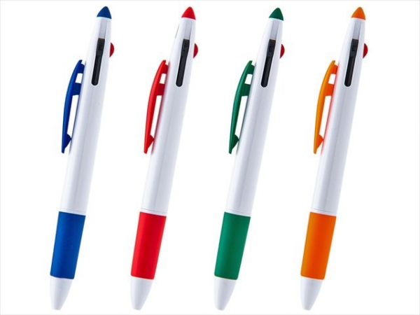 ・ノベルティで人気の激安3色ボールペンが新登場!! ・最安価格 52.8円(税込)から 名入れ代・版代・送料無料 ・最小ロット 100本から作成 ・大きな印刷サイズでPR効果抜群《最大印刷サイズ45×6mm》 ・名入れが際立つフルカラー印刷対応ボールペン