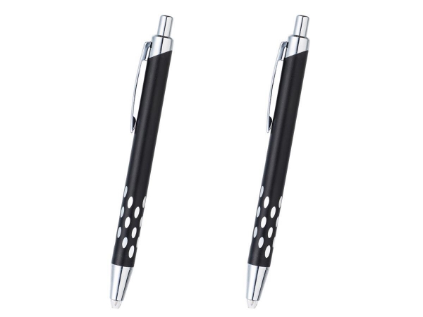 光るメタリックペンは、暗いところでの筆記などに役立つペン先にLEDライトを搭載した便利なボールペンです。メタリック調のブラックボディとアルミ軸の適度な重量感が高級感を醸し出す記念品などにおすすめの名入れボールペンです。