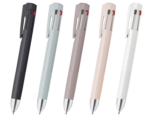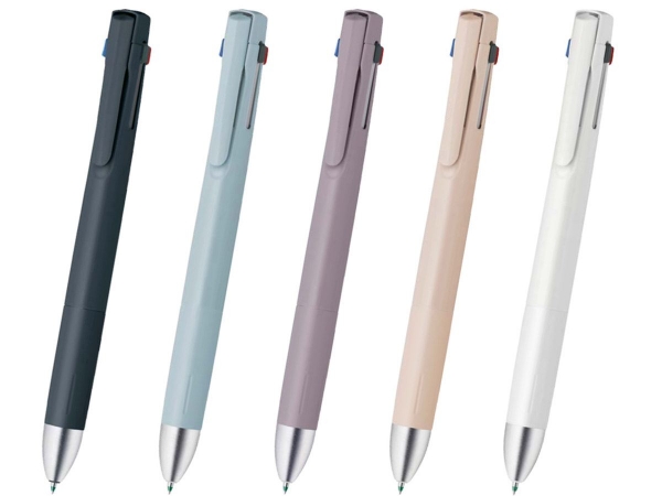 筆記時に生じる振動を制御したブレないボールペンです。 独自開発の機構によって、従来品では筆記時に紙とペン先が接触すると発生していた振動(ブレ)を制御することで、「ストレスフリーな書き心地」を実現しました。 1本で4色とシャープペンを使えるのに、コンパクトでシームレスなボディ。「ブレンシステム」を搭載した5機能ペンです。