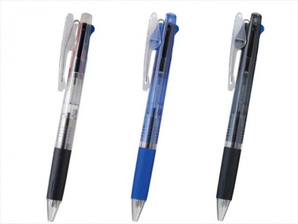 支点スライドクリップで奥まで入りしっかりキープ!便利な3色ボールペン 挟むものの厚みによって、クリップの支点部分がスライドする「支点スライドクリップ」を搭載した人気シリーズに3色ボールペンが登場。ボディカラーは、透明、透明青、透明黒の全3色からお選びいただけます。