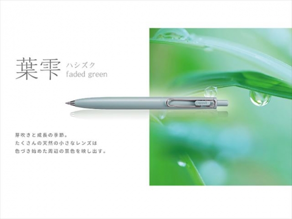 日常で目にする身近な色を表現した軸色 日常生活で目にする景色は、季節や状況によって変わり、原色ではなく曖昧とした色に見えていることを踏まえて、それぞれの軸色をくすんであせたような色(フェイデッドカラー)で取りそろえました。使う人の手元にいつも置いてあるお気に入りの1本でありたいという思いから、それぞれの軸色名は、使う人に情緒的な感性を共感していただけるような何げない日常のささいな景色から採用しました。 低重心で安定した筆記を実現した「スタビライザー機構」搭載 ・リフィルを保持する先軸に寸法精度を高めた金属製のペン先を採用しており、低重心で安定した、よりなめらかな書き味を実現しています。軽い力で安定してスラスラ書くことができるため勉強やメモ書きのみならず、日記などにも適しています。 ・快適な書き心地だけでなく、ワンポイントの金属製のペン先がデザインのシャープさを際立て、より洗練された上質な印象を与えます。
