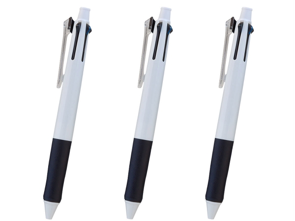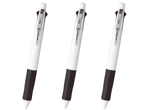 1本5機能で500円程!コストパフォーマンス抜群の多機能ペン 黒、赤、青、緑の4色の油性ボールペンとシャープペンを搭載した5機能ペンです。優れた機能を有するにも関わらず、価格は1本500円程度と非常にリーズナブル。シンプルかつ上品なデザインでスーツや学生服などあらゆるシーンにマッチします。