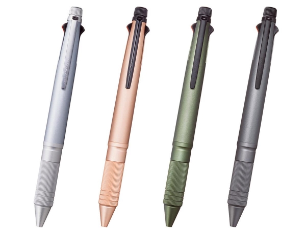 「ジェットストリーム 4&1」の魅力である“タフ”“操作性”“洗練されたデザイン”をアルミ素材の採用により、使いやすさ、デザインとも進化させました。先軸にアルミ素材を採用しながらビジネスシーンに合った落ち着いた配色とし、グリップ部は、握りやすいローレット加工を施しています。消しゴムキャップにもアルミ素材を採用し、ローレット加工を施すことにより、上質なデザイン性と操作性を両立させています。男女問わず人気のジェットストリーム多機能ペンはプレゼントに最適です。