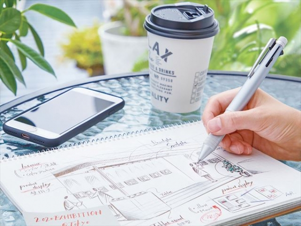 ジェットストリーム 4&1の魅力である“タフ”“操作性”“洗練されたデザイン”をアルミ素材の採用により、使いやすさ、デザインとも進化させました。先軸にアルミ素材を採用しながらビジネスシーンに合った落ち着いた配色とし、グリップ部は、握りやすいローレット加工を施しています。消しゴムキャップにもアルミ素材を採用し、ローレット加工を施すことにより、上質なデザイン性と操作性を両立させています。