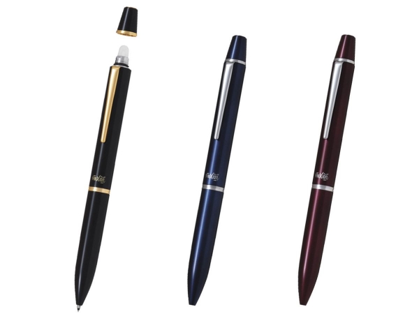 ビジネスシーンで活躍するフリクションボールビズシリーズに回転3色モデル「フリクションボール3 ビズ」新登場。1本で黒・赤・青の3色が使えるから、どんなシーンでもスピーディに対応できます。ボディにはメタル素材を使用し、スーツのポケットにもよく馴染みます。 ペン先は細かい箇所への筆記に最適な極細タイプの0.5mm。細かく書けてきれいに消去できるため、商談資料への書き込み・修正、手帳でのスケジュール管理・変更に最適です。