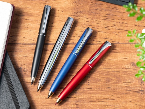太くはっきり書ける高級サインペン。 高級感のあるボディにキャップがなくても乾かないインクを搭載。 ビジネスシーンで相手に要点を伝える時、太く見えやすい筆記線でわかりやすく伝えられるサインペンです。 また軽いタッチなので思考を書き出し整理する時にも便利です。相手や自分にディレクション(指示、方向を指し示す)することができるペンです。