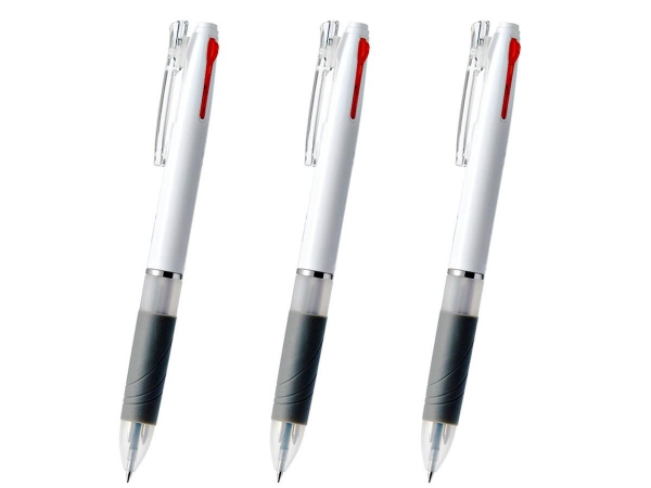 “エマルジョンインク”の搭載によって、今までにないなめらかさと濃い描線を実現した「スラリ」の3色ボールペンです。インク色は、公式文書にも使用可能な赤、青、黒。名入れ文字がキレイに際立つ白軸だからノベルティにおすすめの名入れボールペンです。