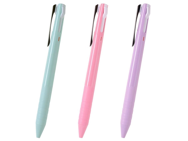 ジェットストリーム3色スリムコンパクト0.38mmは、単色ボールペンと変わらない最大φ11.3mmのスリムな軸だから、バッグに入れて持ち歩いたり、手帳に差したりして持ち歩くのに便利な3色ボールペンです。統一感のある同系色のグリップがつなぎ目を目立たせないおしゃれなデザイン、多くの女性が好まれる極細文字が書ける0.38mmのボールペン、ミントグリーン、ベビーピンク、ラベンダーのかわいらしいカラーが特徴のジェットストリーム3色スリムコンパクト0.38mmは女性向けのイベントなどの名入れボールペンにおすすめです。