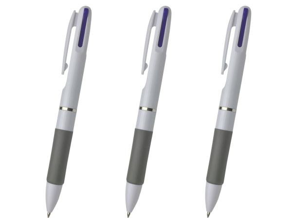 3色ホワイトボールペンはシンプルなカラーリングだから、名入れが際立つボールペンです。利便性の高い3色ボールペンはノベルティグッズとしても人気が高く、販促品・粗品などの名入れボールペンにおすすめのボールペンです。