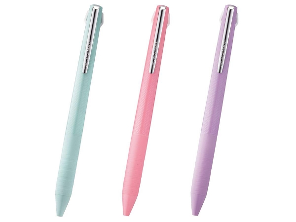ジェットストリーム3色スリムコンパクト0.38mmは、単色ボールペンと変わらない最大φ11.3mmのスリムな軸だから、バッグに入れて持ち歩いたり、手帳に差したりして持ち歩くのに便利な3色ボールペンです。統一感のある同系色のグリップがつなぎ目を目立たせないおしゃれなデザイン、多くの女性が好まれる極細文字が書ける0.38mmのボールペン、ミントグリーン、ベビーピンク、ラベンダーのかわいらしいカラーが特徴のジェットストリーム3色スリムコンパクト0.38mmは女性向けのイベントなどの名入れボールペンにおすすめです。