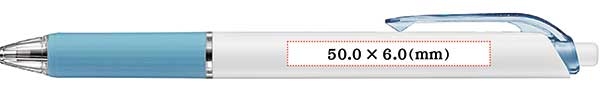 ほとんど軸の太さに違いはないので、フルカラー印刷で最大50.0mmの印刷が可能です。 名入れ可能範囲は最大50.0×6.0mmとなりますが、印刷可能範囲全面に天地(上下)6.0mmで印刷しますと 名入れが多少歪む事がありますので、その場合は天地5.8mmくらいを目安に作成いただくのがお勧めです。