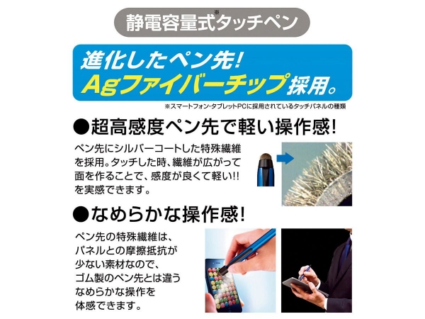 特殊繊維「Agファイバーチップ」を搭載した スタイラスボールペン。 デジタル端末でもアナログ手帳でも、 なめらかな使い心地を実現しました。