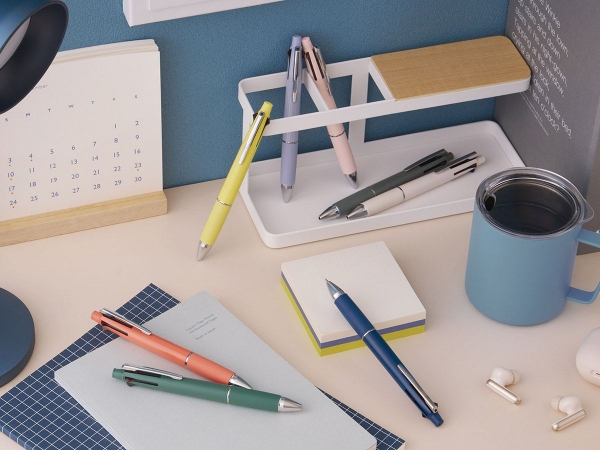 ■お気に入りの色が見つかる軸色ラインアップ 幅広い色相をカバーする軸色のラインアップとなっております。また、色によって光沢のあるものやマットな質感のものがあり、好みに合わせて選んでいただくことができます。ビジネスからカジュアルまで幅広くお使いいただけます。 ■軸色と同色のラバーグリップ 従来は、フォーマルな印象でどのようなシーンにもマッチする黒のグリップを中心に展開してまいりましたが、時代や働き方の変化とともに統一されたトーンを好まれることも増えてきており、ラバーグリップを軸色と合わせたラインアップを拡充いたします。手帳や小物などご自身の持ち物や服装に合わせてカラーグリップの軸を選んだり、黒グリップ搭載の軸ですっきりとした印象にしたり、シーンや好みに合わせて選択をしていただけます。