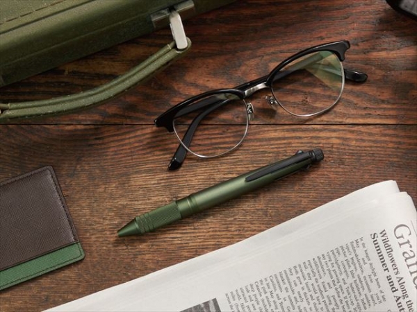 ジェットストリーム 4&1の魅力である“タフ”“操作性”“洗練されたデザイン”をアルミ素材の採用により、使いやすさ、デザインとも進化させました。先軸にアルミ素材を採用しながらビジネスシーンに合った落ち着いた配色とし、グリップ部は、握りやすいローレット加工を施しています。消しゴムキャップにもアルミ素材を採用し、ローレット加工を施すことにより、上質なデザイン性と操作性を両立させています。