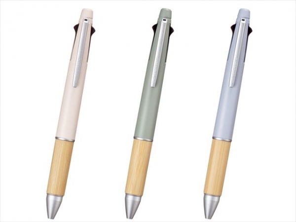 ・竹の繊維感が美しい、天然竹製グリップ 素朴でありながら上品な風合いと耐久性を兼ね備えた、ナチュラルな竹製グリップボールペン。美しい竹の繊維感を生かしつつ、長くお使いいただくためにクリア塗装を施しています。 竹材は耐久性もあり、「ジェットストリーム 4&1」の魅力である“タフ”“操作性”“洗練されたデザイン”ともマッチしており、デイリーユースとして長くご愛用いただけます。 ・ノートや手帳など日常的に使いやすい4&1 4&1は、ボールペン4色とシャープが1本に搭載されているため、ノートや手帳、書類、資料への色分けしての書き込みに最適で、日常的に使いやすい多機能ペンです。