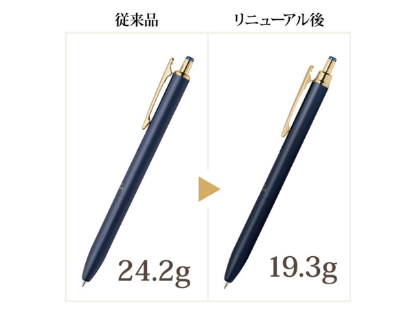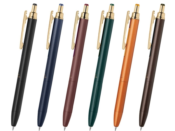 高級感のあるデザインで、ビンテージカラーインクを搭載したボールペン。 ビンテージカラーは、ブルーブラックやブラウングレーなど万年筆のインクのように落ち着いたシックな色合いです。文字書きでもくっきり見える色ながら、黒とは違ったやさしい雰囲気で、ちょっとした個性の演出ができます。 より手帳に使いやすくなるよう、前回モデルより軽量化するなど設計とデザインをリニューアルしました。