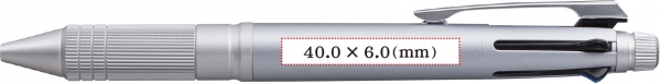 ジェットストリーム 4&1の魅力である“タフ”“操作性”“洗練されたデザイン”をアルミ素材の採用により、使いやすさ、デザインとも進化させました。先軸にアルミ素材を採用しながらビジネスシーンに合った落ち着いた配色とし、グリップ部は、握りやすいローレット加工を施しています。消しゴムキャップにもアルミ素材を採用し、ローレット加工を施すことにより、上質なデザイン性と操作性を両立させています。
