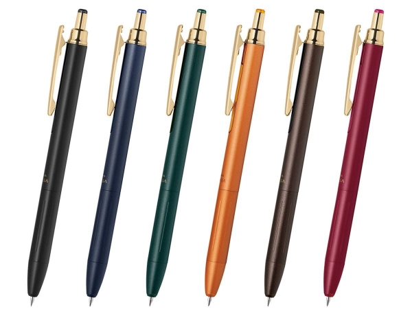 高級感のあるデザインで、ビンテージカラーインクを搭載したボールペン。 ビンテージカラーは、ブルーブラックやブラウングレーなど万年筆のインクのように落ち着いたシックな色合いです。文字書きでもくっきり見える色ながら、黒とは違ったやさしい雰囲気で、ちょっとした個性の演出ができます。 より手帳に使いやすくなるよう、前回モデルより軽量化するなど設計とデザインをリニューアルしました。