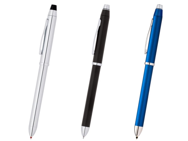 キャップを回転させて黒と赤のボールペンと0.5mmのペンシルを切り替えられる複合ペン、テックスリー。CROSSブランドを象徴するコニカルトップを施した高級感のあるシルエットはビジネスシーンにもマッチします。スクリュー式のキャップトップ内にペンシル用消しゴムを内蔵、別売のスタイラスパーツを使うことで、タッチスクリーンの操作がスムーズに行えます。