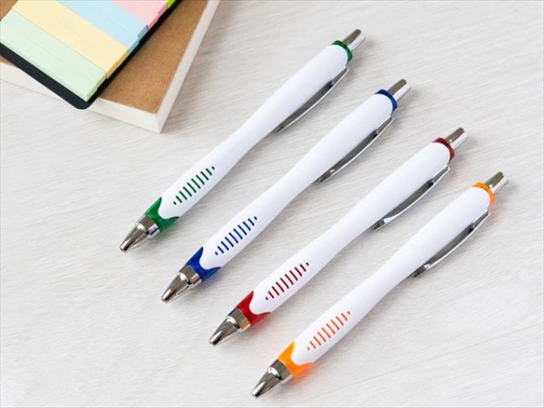 ホワイトビーナスボールペンは、なめらかな曲線フォルムとカラーパーツをアクセントに光沢あるホワイト軸がおしゃれなデザイン性と安定した書き心地を備えたボールペンです。名入れが際立つキレイなホワイトボディだから特にフルカラー印刷をさせていただきたいボールペンです。ノベルティボールペンとしてご使用いただく機会が多いホワイトビーナスボールペンは、名入れ無料の最安価格37円から、納期は業界最速納品・最短2日でお届けいたします。