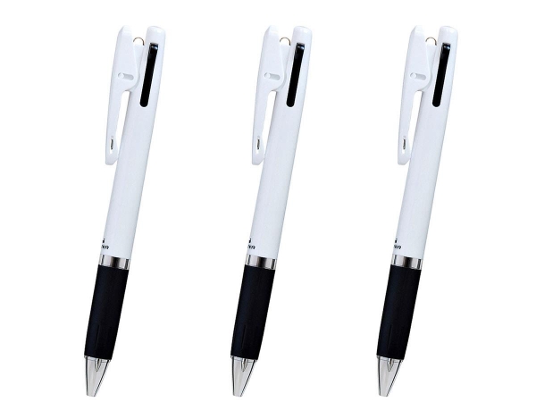 支点スライドクリップで奥まで入りしっかりキープ!便利な2色ボールペン 片手で簡単にクリップの開閉できる「支点スライドクリップ」の採用により、クリップボードなどの厚い板の奥まで入りやすくガッチリ確実に固定できるようになりました。