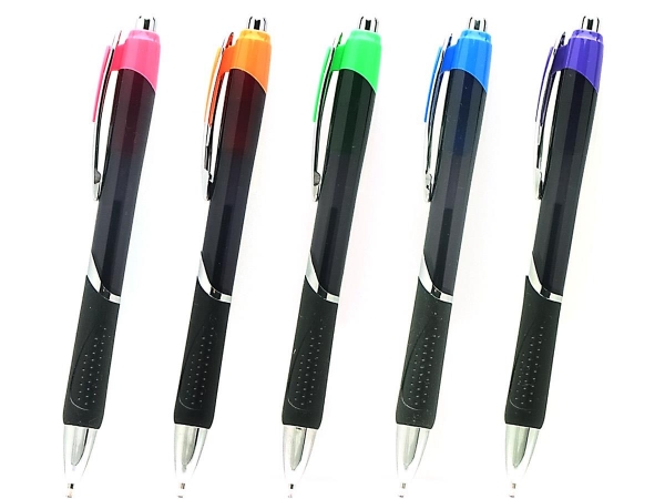 シックなブラックボディにビビットカラーのパーツで「華やかで可愛らしい」おしゃれなボールペンです。カラーアクセントでひときわ目立つこちらのボールペンは、女性向けのイベントなどのノベルティでおススメしたい名入れボールペンです。