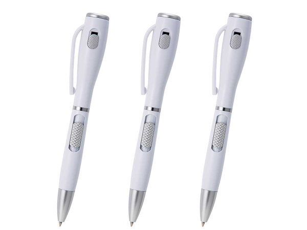 販売実績10年以上の大人気商品にNEWカラーが加わりました。軸全体を光沢のあるホワイトボディで仕上げ、ペン中央のシルバーリングが高級感を引き立てます。LEDライトが停電の時や災害時などの緊急時にとても役立つ便利なLEDライト付きボールペンです。