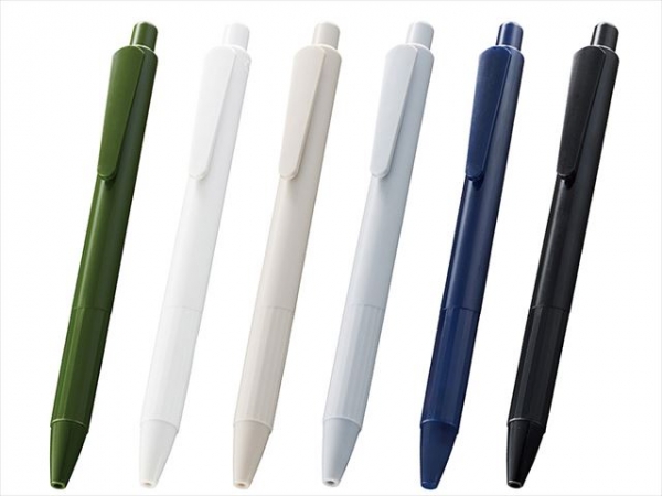 本来廃棄されるペットボトルを再利用して、成型している環境に優しいボールペンです。国内でエコマークを取得しており、本体にはエコマーク付きを証明するシールが貼られております。ボールペンの径は定番で使いやすい0.7mm、インクはブラックの単色です。本体色は印刷映えするブラック、ホワイト、ネイビーの他にエコを連想するグレー、ベージュ、カーキのアースカラーを入れた6色展開となっております。