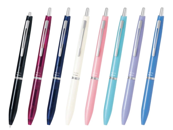 ビジネスやフォーマルシーンで使用できる上質なデザインで、クリップなどの金属パーツのシルバーがアクセントとになっています。 ・なめらかな筆記が特長の「アクロインキ」を採用したスリムタイプの油性ボールペン。 ・握り部を先太りにした形状なので、握りやすく安定した筆記ができます。 ・細かい文字が濃く滑らかに書ける、「アクロインキ」の極細0.5ミリ。 ・書き出しが良くなめらかに濃く書ける、新開発の油性インキ「アクロインキ」