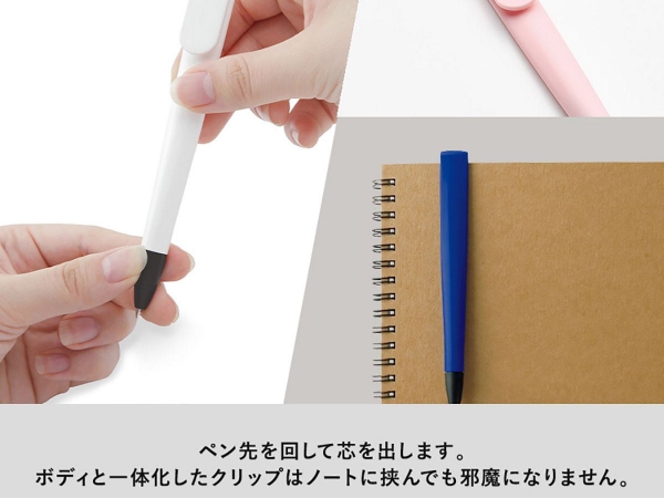 グッドデザイン賞受賞! 無駄のないフラットなボディで名入れ映えするボールペンです。 クリップ部分でノートに挟めば持ち運びにも邪魔にならず、すぐに取り出せる優れものです。 また、素材には本来焼却廃棄予定だったABSを使用し、不要になったABSを再利用することで廃棄する際に排出される二酸化炭素を削減できるため、環境にも配慮したサスティナブルな商品です。 製品素材に由来したアースカラーを取り入れ、用途に合わせてお選びいただける7色展開のボールペンです。