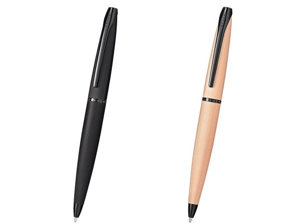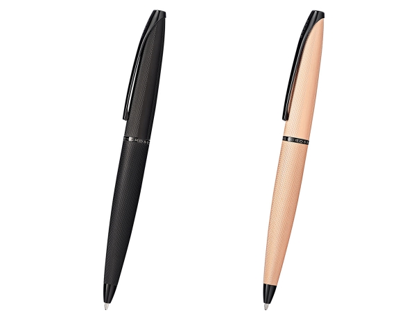 手にフィットする太字でなだらかなシンプルなラインが特徴の、スタイリッシュなボールペンです。ボディ全体に細やかなダイヤモンド柄の彫刻をあしらったブラッシュトフィニッシュがお洒落に仕上がっております。