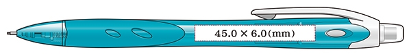 名入れ可能範囲は最大45.0×6.0mmとなりますが、印刷可能範囲全面に天地(上下)6.0mmで印刷しますと 軸の細い部分の名入れが多少歪む事がありますので、その場合は天地5.5mmくらいを目安に作成いただくのがお勧めです。 名入れ位置の中央から向かって左側にかけては軸が細くなりますので、天地(上下)を6.0mm使うような 細かいロゴは、より綺麗に名入れが映える中央から向かって右側への配置をお勧めしております。