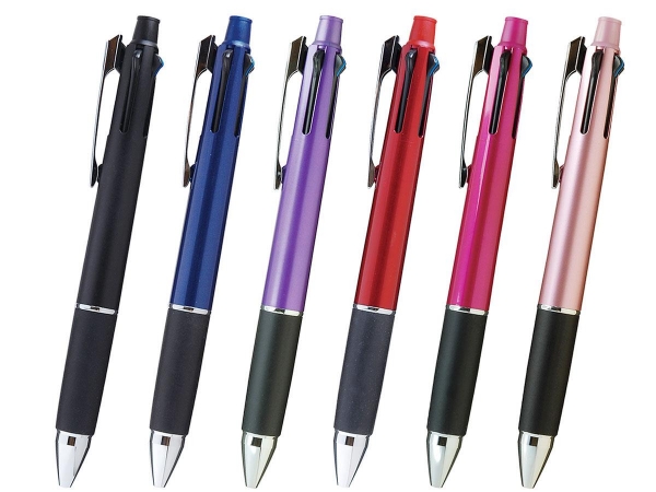 ジェットストリーム4&1-0.5mmは、記念品やノベルティに断トツに人気がある名入れボールペンです。用途に合わせて使い分けが可能な、4色ボールペンとシャープペン機能を搭載した「機能性」と、おしゃれでスタイリッシュな軸とカラーリングの「デザイン性」が人気の多機能ペンです。特にビジネスシーンで愛用者の多いボールペンなので、記念品やセミナー、イベントのプロモーショングッズの名入れボールペンに断トツの人気です。本体の軸色はノベルティ配布シーンに合わせて選びやすい、マット調のブラック、パープル、ライトピンクや、メタリック調のネイビー、ボルドー、ピンクの全6色から選べて最小ロットが5本からご注文可能なジェットストリーム多機能ペン4&1-0.5mmを記念品などの名入れボールペンにご検討ください。