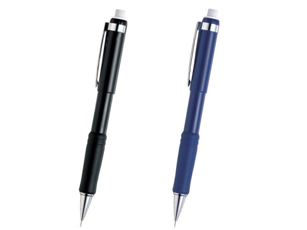 黒くなめらか高密度B・2B芯内蔵。手になじみ、筆記感の良いシリコンクリップ。全長30mmの回転式大型消しゴム付ボールペン。