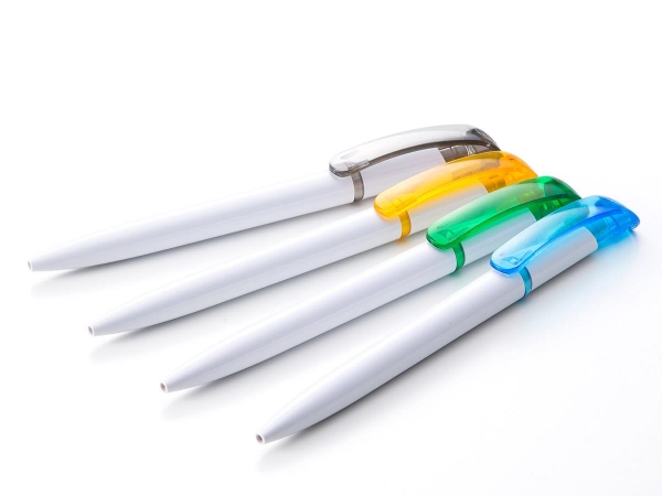 スラリと長いシンプルでおしゃれなホワイトボディに、ノック棒やカラーリングなどのカラーパーツアクセントが人気のなめらかで書きやすいドイツ製インクを採用したボールペンです。