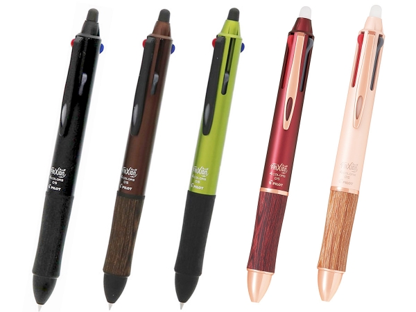 カバ材を使用した高級感ある木製グリップが、大人の雰囲気を演出する「フリクションボール4 ウッド」。1本で4色を使い分けでき、何度でも書き消し可能な利便性の高い4色ボールペンです。