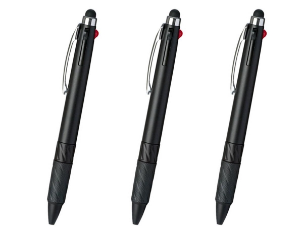 ・スマホやタブレットの操作のしやすいタッチペンが付いた便利な3色ボールペン