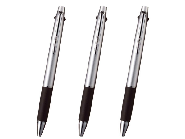 ジェットストリーム3色ボールペン0.7mmシルバー(SXE3-800-07)はジェットストリームインクの「濃くなめらかに書ける」良さをそのままに黒、赤、青が書ける3色ボールペンです。利便性の高い3色ボールペンはマルチなシーンで使えて便利なので『もらって嬉しいノベルティ』でも上位ランクのカテゴリーです。高級感あふれるシルバーボディ、使い勝手を重視したスリムでスタリッシュなデザインと軽量ボディだから老若男女問わず贈れるので、記念品、イベントなど様々なシーンでのノベルティ用の名入れボールペンにおすすめです。