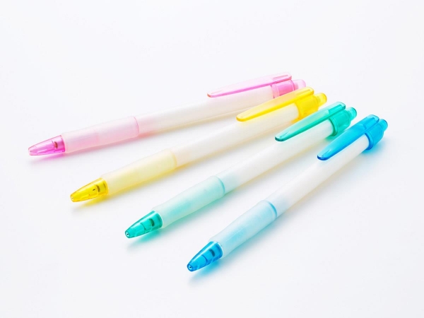 パステル904ラバーシャープペンは、小学生や中学生などのイベント用の景品に人気の名入れシャープペンです。ノックパーツとペン先パーツのカラーリングが統一されたスリムでスタイリッシュなノック式シャープペンで、スリムで握りやすく、ペン先のラバーグリップが指をしっかりホールドしてくれるので書き心地も損ないません。また、濃色カラーの印刷を際立たせる薄いクリーム色の軸だからノベルティや販促品などの名入れシャープペンにもおすすめのです。