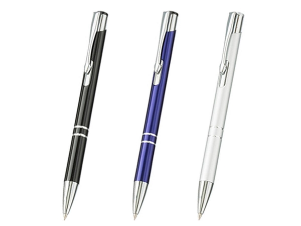 スタイリッシュメタルボールペンは高級感漂わせる程よい重量感のあるリーズナブルな価格の金属ボールペンです。光沢のあるカラーデザインがさらに高級感を引き立てるボ-ルペンなので様々なシーンの名入れボールペンにおすすめの1本です。