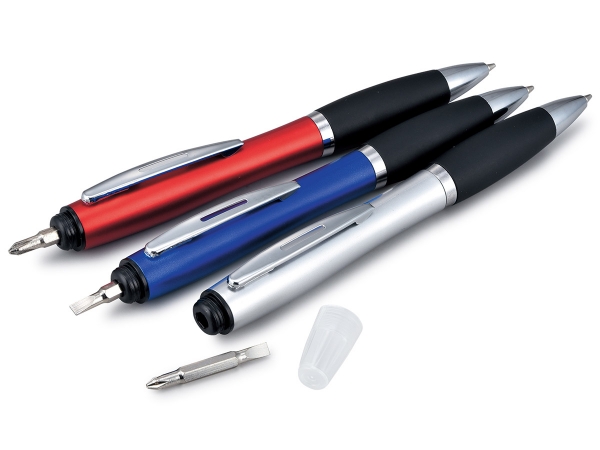 ボールペンのトップにミニドライバーが付いた便利な1本です。外見もメタリック調で光沢感があり高級感抜群のボールペンです。