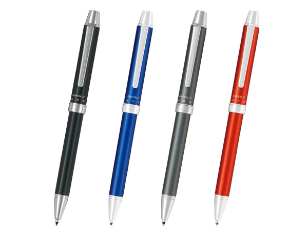 輝くアルミボディにダブルアルマイト加工を施した、上質なデザインの新モデル。伝統的な「ヘリンボーン柄」をご用意しました。 2種のボールペンにシャープペンシルを加えた2+1の軽くて書きやすい多機能筆記用具です。