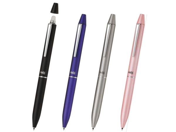 ビジネスシーンで活躍するフリクションボールビズシリーズに回転2色モデル「フリクションボール2 ビズ」が新登場。1本で黒・赤の2色が使えるから、どんなシーンでもスピーディに対応できます。ボディにはメタル素材を使用し、スーツのポケットにもよく馴染みます。ペン先は細かい箇所への筆記に最適な超極細タイプの0.38mm。細かく書けてきれいに消去できるため、商談資料への書き込み・修正、手帳でのスケジュール管理・変更に最適です。