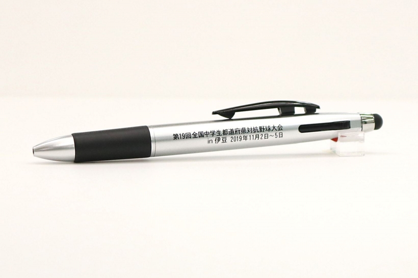 この度は【タッチペン付き3色ボールペン】のご購入を頂きまして誠にありがとうございました。 こちらのタッチペン付き3色ボールペンに黒名入れで印刷した製作実績を掲載させていただきます。 お客様満足度向上アンケートにご協力下さり、大変うれしく思い心より感謝申し上げます。 又、アンケートハガキのご要望欄に詳細なコメントを頂きまして、誠にありがとうございました。 頂いたご意見を参考にセール品や新商品などのサンプルを積極的にお客様にご提案出来るようなシステムを構築してまいりたいと思います。 今後も社員一同、丁寧且つスピーディな対応を日々心掛け、業務に取り組んで参りますので、 又、機会がございましたら、何卒よろしくお願い申し上げます。 またのご利用をスタッフ一同、心からお待ちしております。