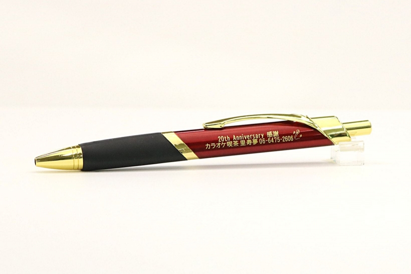 この度は、【メタリック三角ペン】をご購入いただきまして誠に有難うございます。 こちらのメタリック三角ペンにゴールド名入れで印刷した制作実績を掲載させていただきます。 また、お客様向上アンケートにご協力いただき有難うございます。 ご購入いただきました三角ペンは重量感のあるメタリックボディです。さらにゴールド印刷が高級感溢れ記念品にピッタリです。 20周年の記念に喜んでいただき嬉しく思います。 今後とも何卒どうぞ宜しくお願い致します。