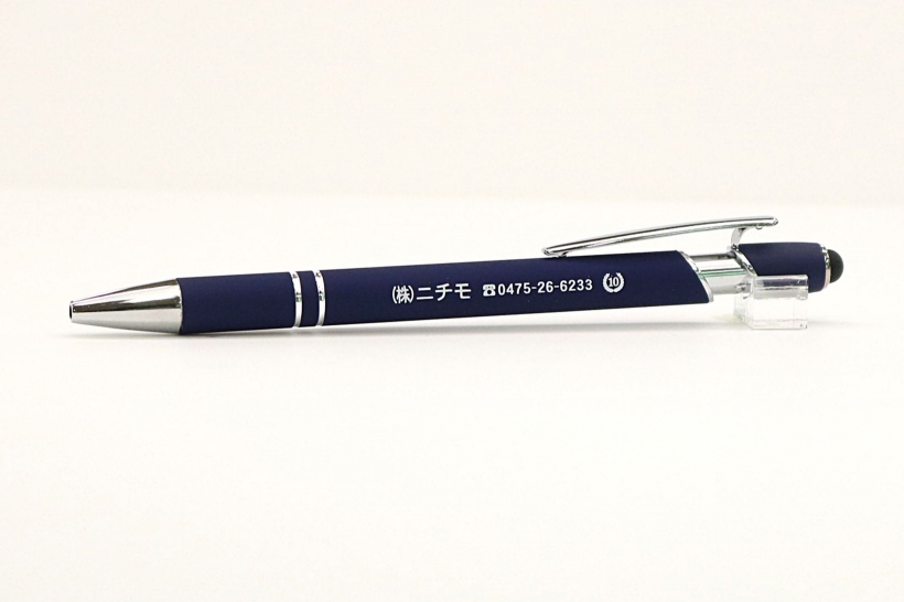 この度は,【タッチペン付シリコンDXボールペン】をご購入いだきまして誠にありがとうございました。 こちらのタッチペン付シリコンDXボールペンに白名入れを印刷した製作実績を掲載させていただきます。アンケートでは満足の評価をいただきまして感謝いたします。こちらの商品は形状が細く天地が4mmしか使えないボールペンになりますので、1行で印刷する事によってはっきり目立つ様に仕上がりました。これからも、サービスや商品のクオリティー向上に努めて参りますので、今後とも何卒よろしくお願いいたします